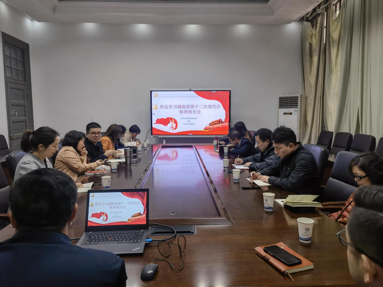 12月7日下午,科学技术研究院党支部举办了传达学习湖南省第十二次党代会精神宣讲报告会,党支部书记刘文同志作宣讲报告。