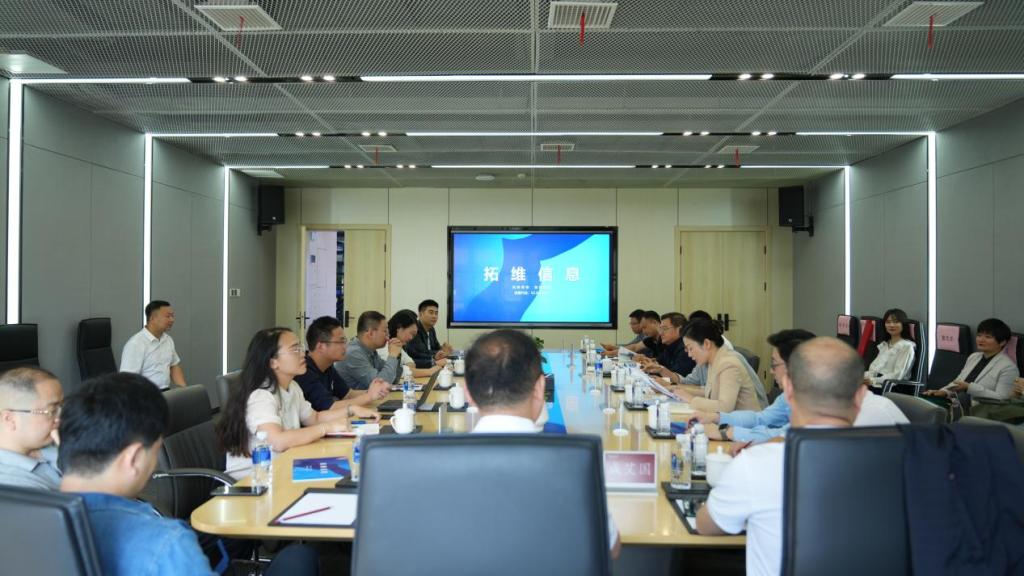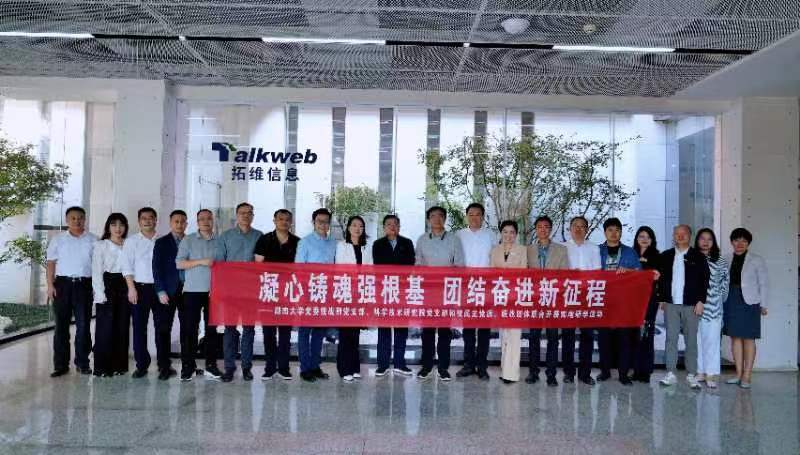 在拓维信息系统股份有限公司,调研团一行实地参观了拓维数字化体验展厅,了解拓维信息基于鲲鹏、了解拓维信息基于鲲鹏、昇腾AI、开源鸿蒙等国产化技术底座,在全栈国产软硬一体化产品体系、技术优势、应用场景及产业链协同等方面的进展和成效。座谈会上,听取拓维信息党委书记、湘江鲲鹏副总经理肖前辉工作介绍,双方就如何深化产教融合、凝练科研方向、打造数字中国建设贡献科技创新力量等进行深入交流。